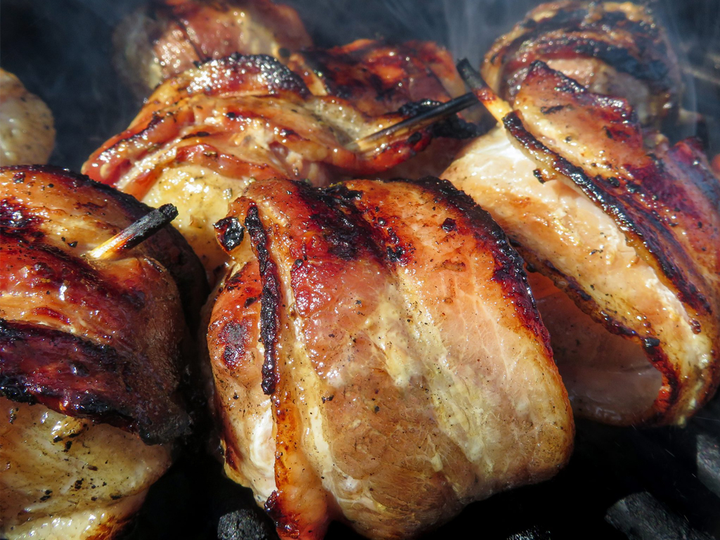 - CAUTION: When grilling, the bacon fat produces grease, creating flames.